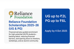 Merit-cum-means UG scholarships for students in any stream, and PG scholarships for top students in new-tech domains—plus mentoring, enrichment and an alumni network.